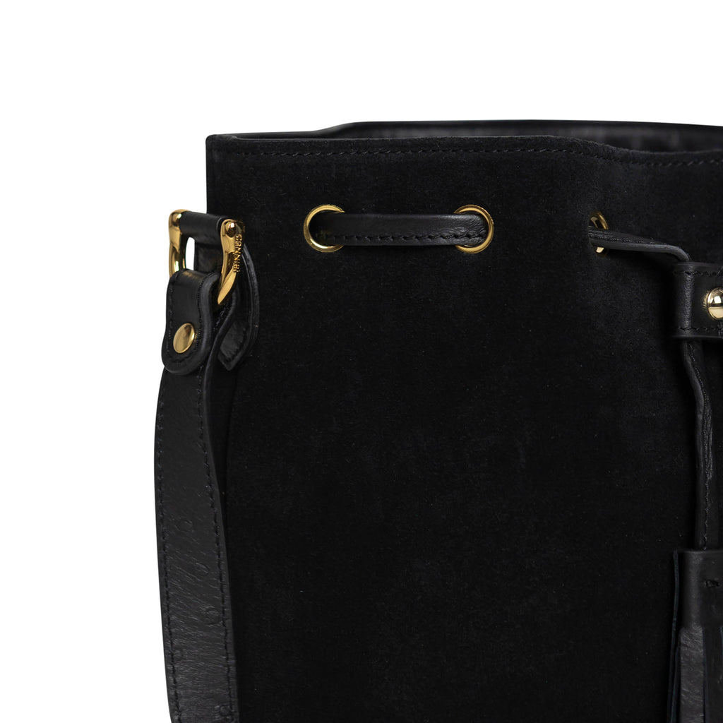 • Colore e composizione: pelle stampa struzzo nera e suede nero
