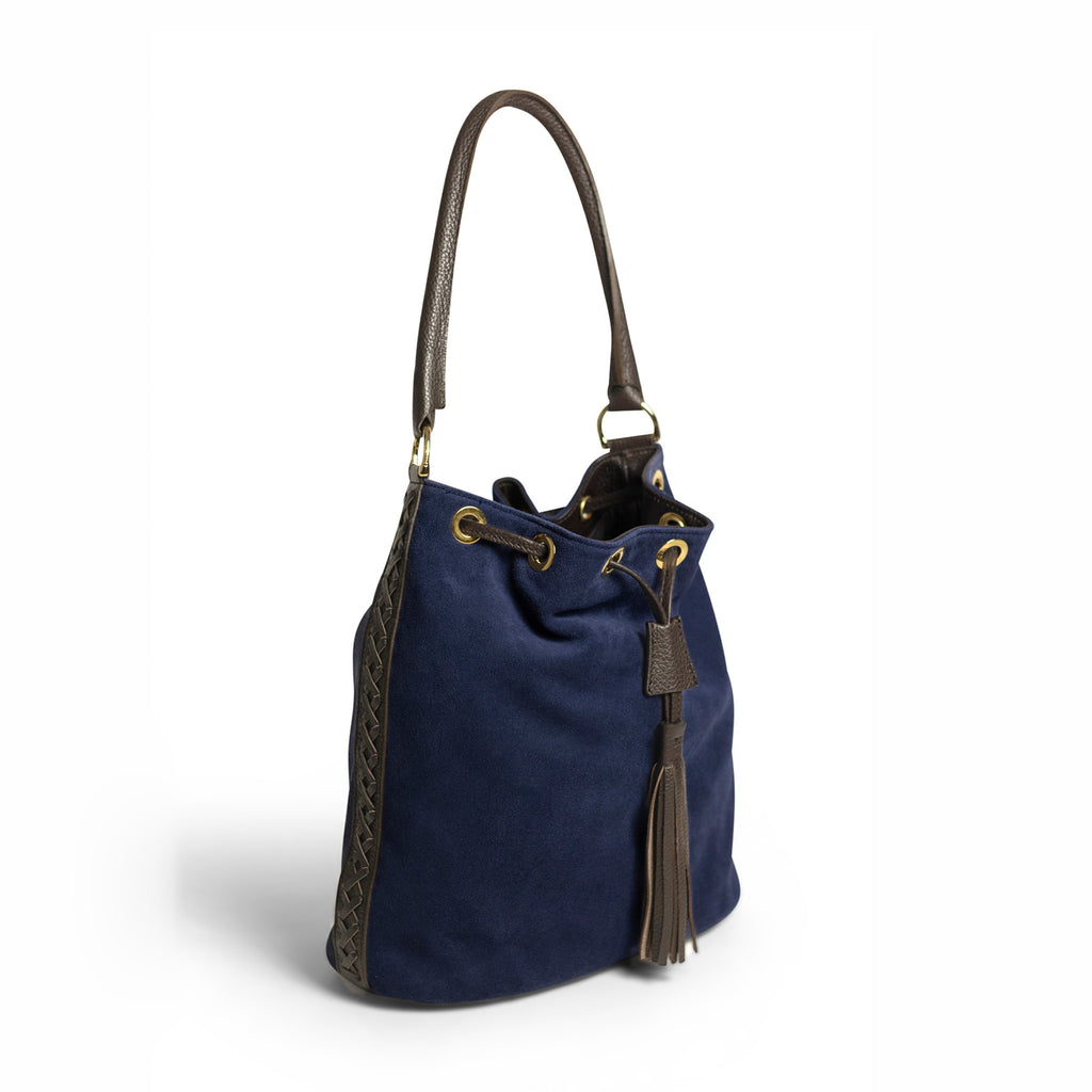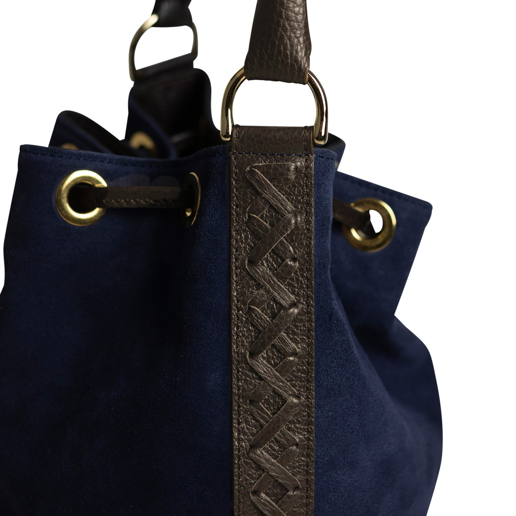 • Colore e composizione: pelle martellata marrone test di moro e suede blu