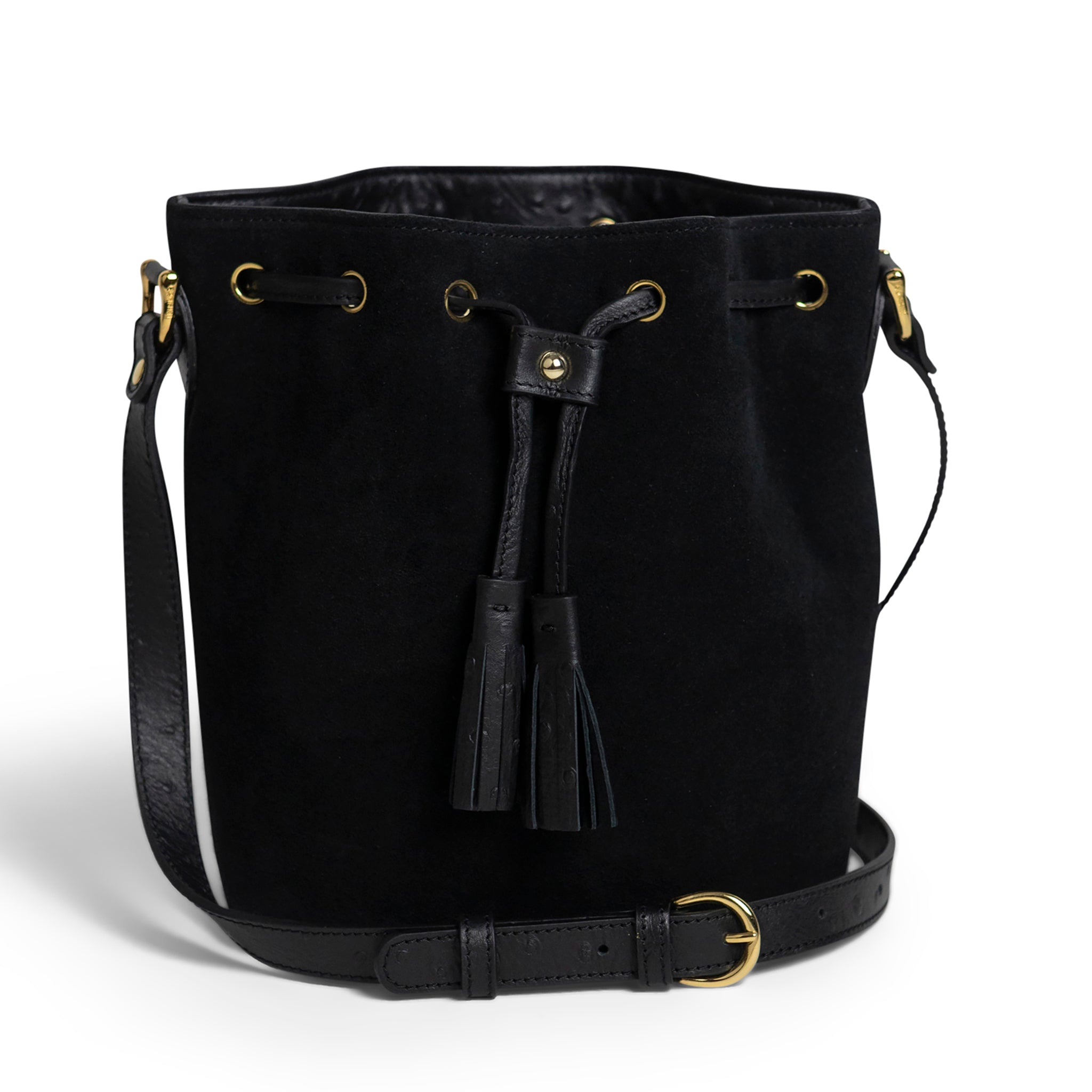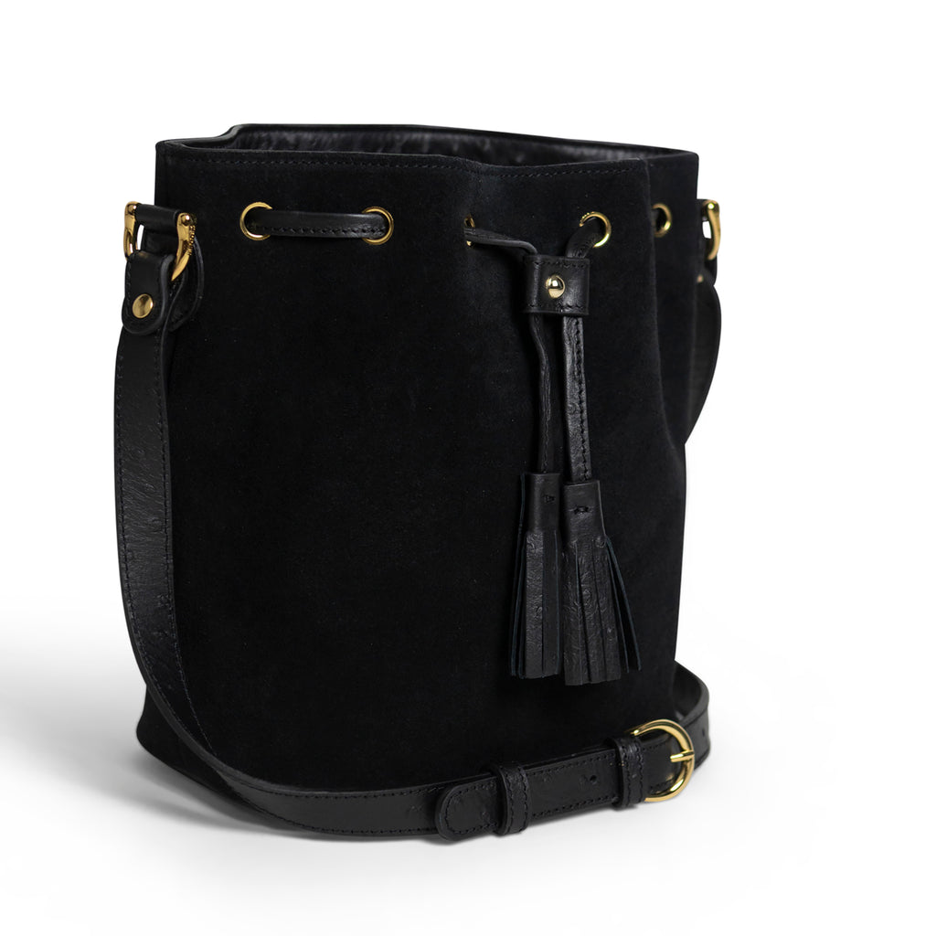 - Colore e composizione: pelle stampa struzzo nera e suede nero