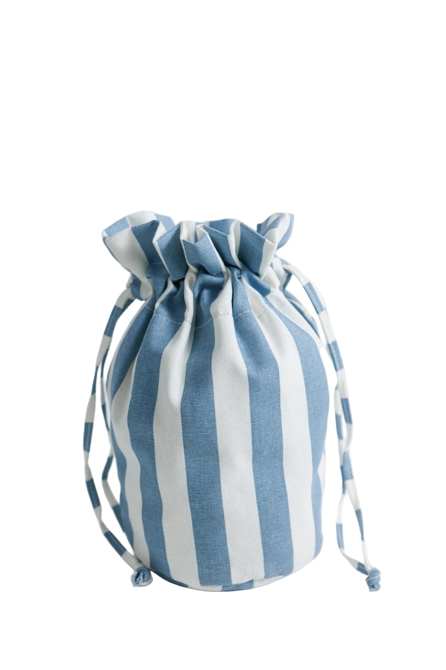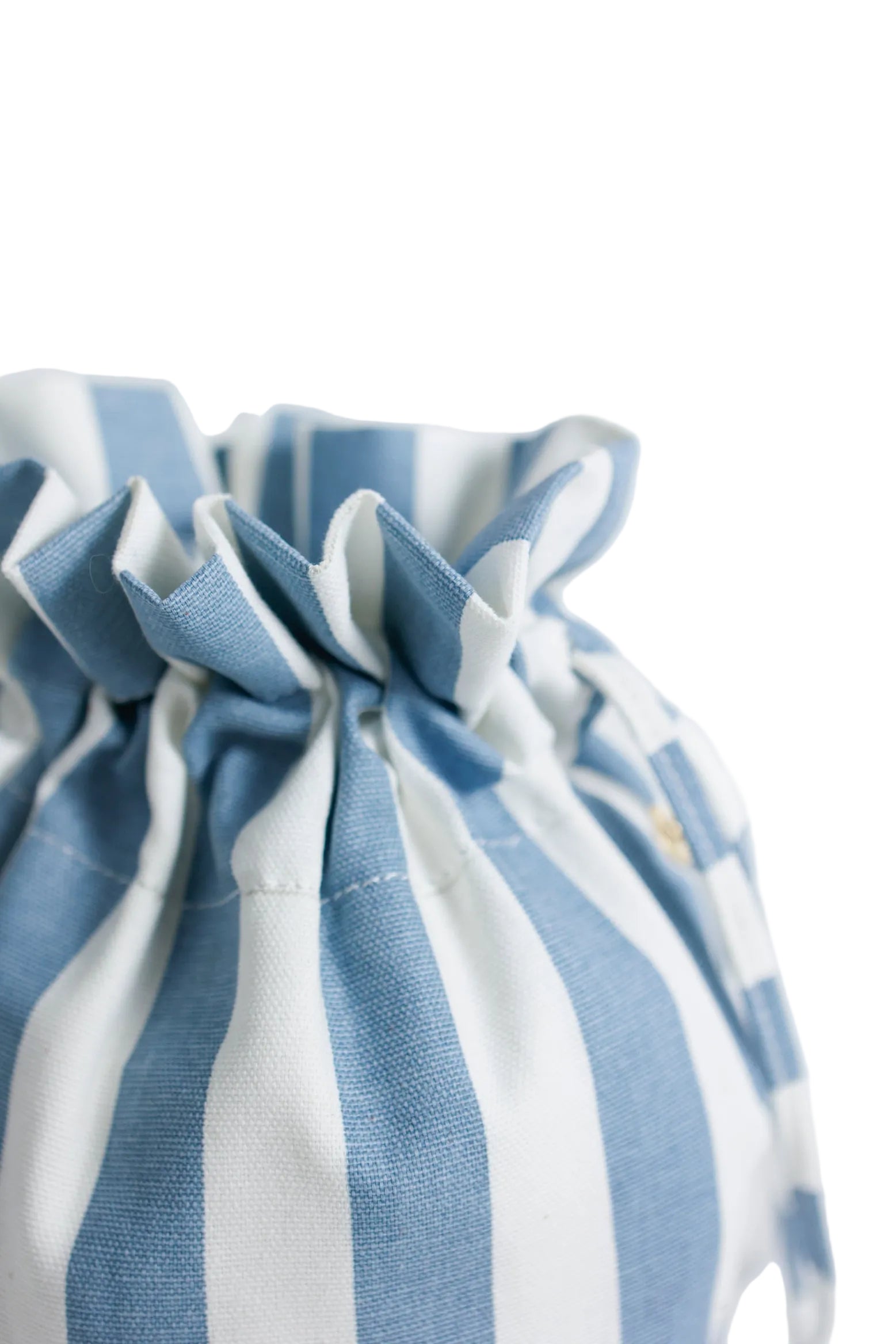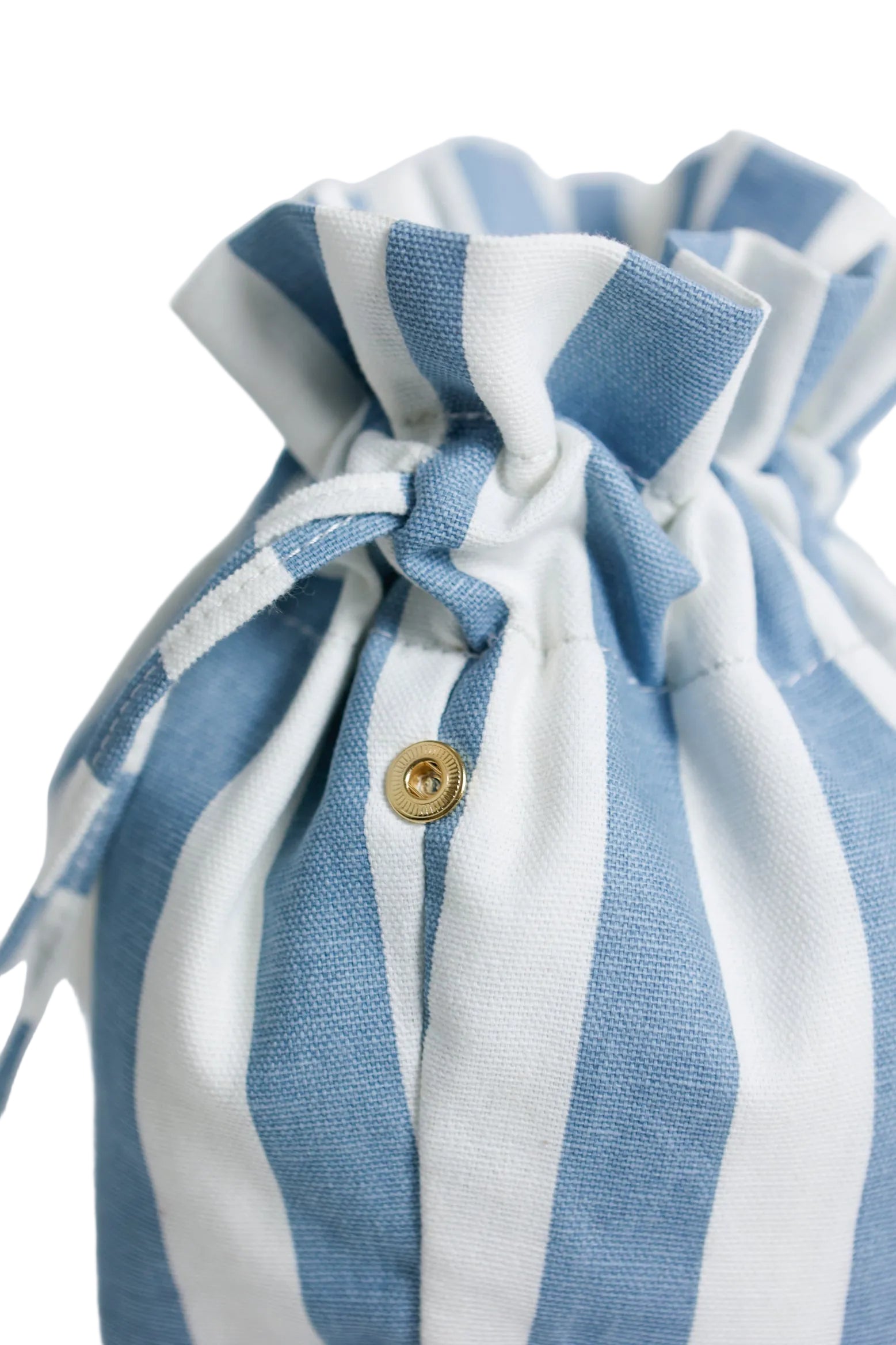 Sacchetto in stoffa a righe bianca e azzurra pensato per personalizzare la tua Occy bag. Dotato di chiusura a coulisse e atromatici che permettono di applicarlo e sostituirlo con facilità. Può essere utilizzato anche come semplice bag da portare a mano.
